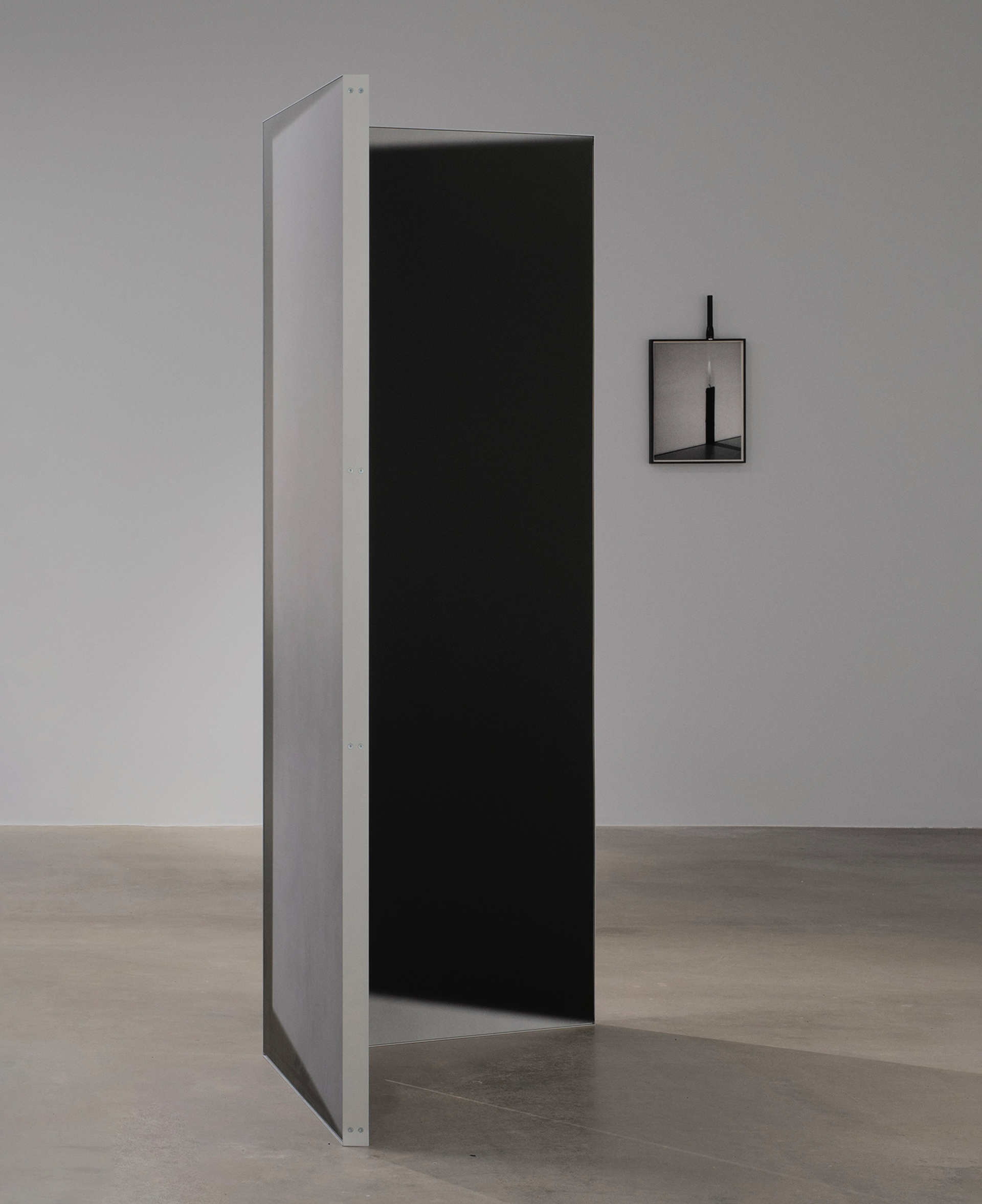 highlights the forms of open window frames. The works Space Divider I & II take their shape and scale from actual doors. They consist of freestanding hinged